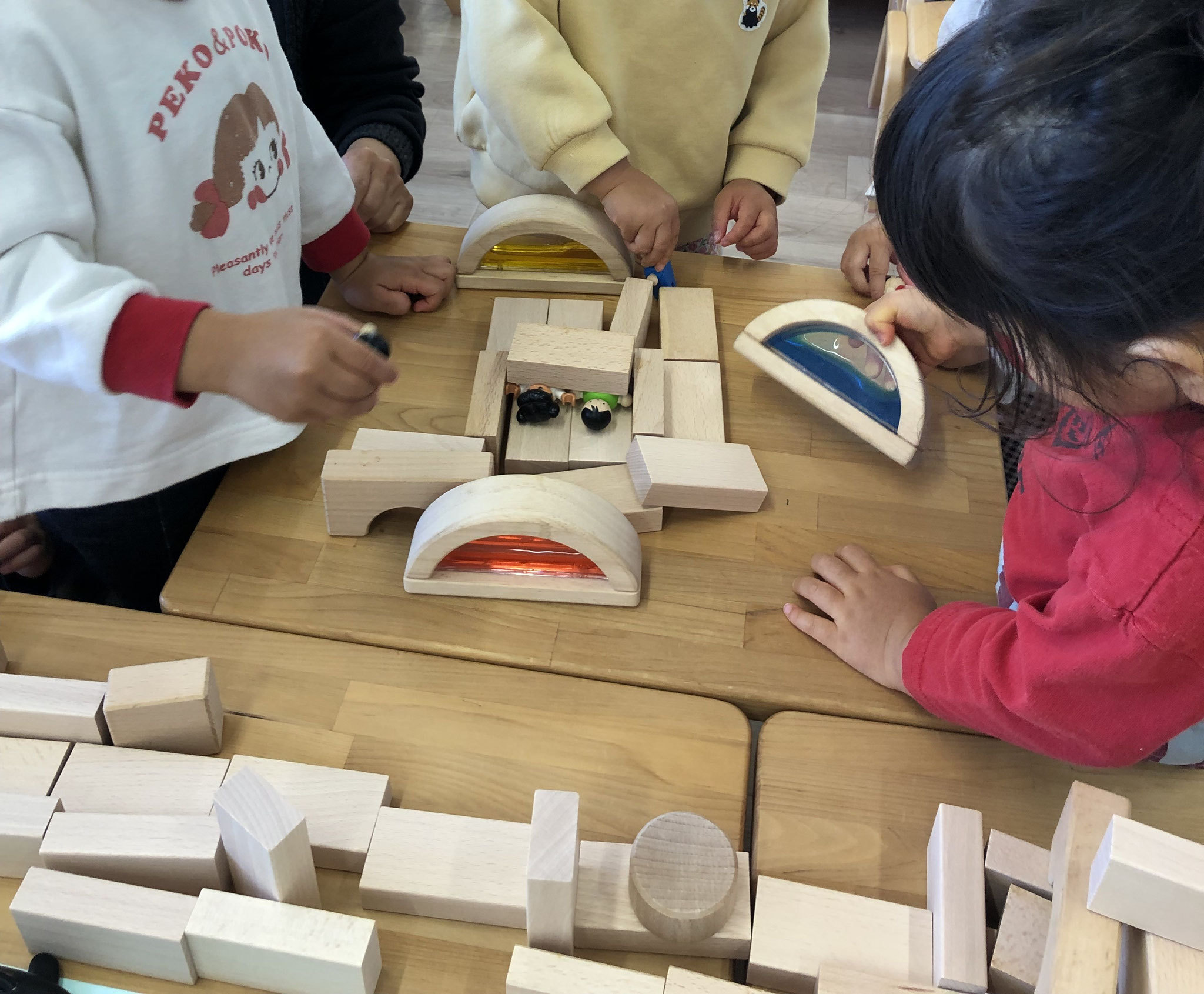 木のおもちゃチッタさんをお招きし、「積み木のワークショップ」をしました。 「みんなも積み木にお客さんを乗せてみよう」の声から、お部屋全体が積み木の世界に包まれました。 おうちのように積み上げる子、どこまでも長く線路のように並べる子。 一人ひとりの「表現したい」があふれ、自由な創造の時間の大切さを感じました。...