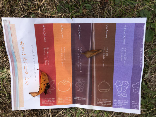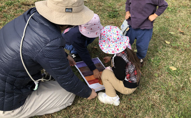 くるまぼり公園で、"もみじ色”・”かき色” ・”くり色”など、秋の色を探します。