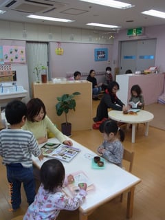 プレクラスでは1~2歳のお友だちが棚の中から好きなものを選んで活動しています。