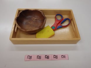 初めはお母さんと離れることができなかったお友だちも、半年が経過し、プレクラスのお部屋が安心できる場所になったようです。9月に入り、少しずつおしごとに熱中し始め、次から次へと自分の手や目など身体や感覚をたくさん使っておしごとに取り組む様子が見られるようになりました。