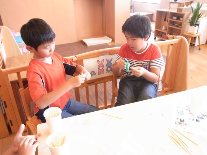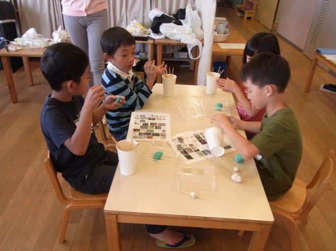 2015/10/27 10月 科学教室 「つくろう こわそう」 今回のテーマは「つくろう こわそう」でした。「つくろう」では、粘土と竹串を使い、やじろべえ作りに挑戦。粘土の重さを調整し、バランスよく立たせるのに、みんな一苦労でした。「こわそう」 では、モーターで動くおもちゃや電卓などを分解し、中身がどのような仕組みになっているのかを楽しみながら、学ぶことができました。 tagPlaceholderカテゴリ: エレメンタリークラス
