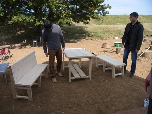 天気の良い日曜日の朝、地域の方やパパ達のご協力をいただき、ウッドデッキ(半分)と外用のテーブルベンチセットを手作りしました。ドライバーを握る父親に「お父さん頑張って!」と覗き込み見入るこどもの姿が印象的でした。でき上がりを想像してわくわくドキドキする事、思い通りにならなくて知恵を絞って工夫する事、「ものづくり体験」はほんとうに人を豊かにします。前日の芋掘り遠足、そして夜のパパ会からずっと参加のお父様方、なかなかハードスケジュールでしたがお疲れさまでした。完成の後はリポビタンで乾杯!感謝です!!これからも手づくりの生活、大事にしたいです。という事で、ウッドデッキの残り半分を今年中に何とかしたいので皆さんまた宜しくお願いします!