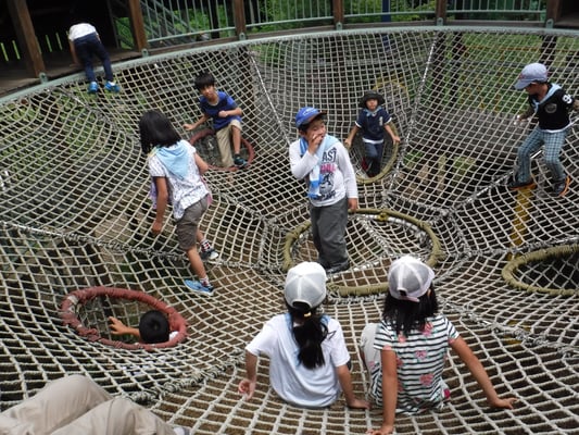 タクシーに乗り、向かった先は宿泊先の高尾の森わくわくビレッジ。夜は綺麗な星空の下、楽しいゲームをやりました。 布団の用意や寝る準備は悪戦苦闘しながらも協力して自分たちで行いました。布団に入り、おやすみなさいをしたらあっという間に夢の中へ、、、