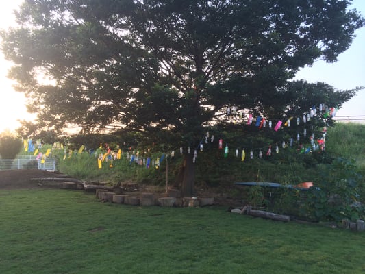 こどもリビングから見渡せる自然の風景が、区画整理事業によって全て失われてしまいそうです。一ノ宮の土手の緑は道路が通る事で失われ、集いの木が伐採された後には2mのコンクリート壁が直角に立ちふさがる事が決まってしまいました。毎日こども達が遊び戯れる土手の斜面。木登り、ターザンロープ、木陰木漏れ日を提供してくれる「集いの木」。そよ風になびく草花と空の風景が、一転して道路とコンクリートの壁に・・・信じられない話ですが工事着工に向けものすごい勢いで話は進んでいます。計画地に土地を借りる者として、先日ほぼ計画が確定した事を伝えられ、今月中には同意書に印を押さねばならない状況となりました。来年の春にはもうこの景色はないのか・・・意外にも地域に住んでいる人達はほとんどその計画を知りません。このまま泣き寝入りするしかないのか・・・つらい現実と向き合わねばならなくなりました。ますますこども達の暮らしにくい環境が加速します。