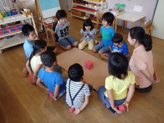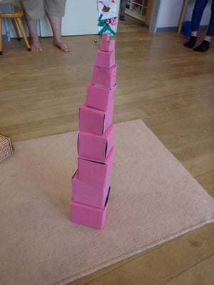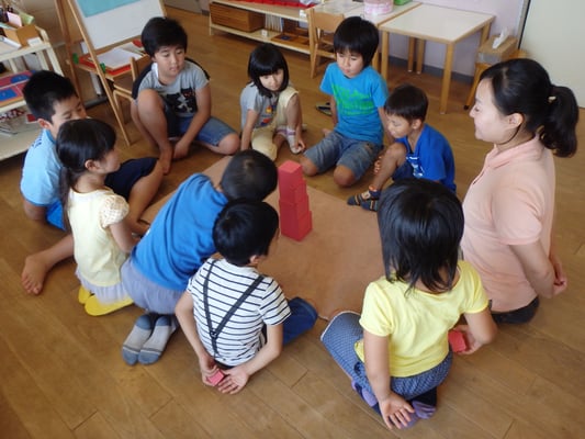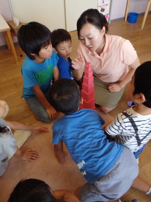 今月のエレメンタリークラスでは、幼保園時代にたくさん触った「桃色の塔」のおしごとをしました。