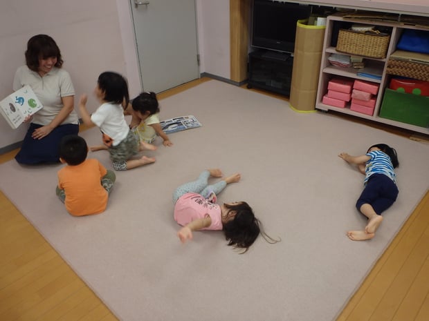 8月のプレクラスはお休みだったので、9月の初めはどんな風になるのだろうと少し心配していましたが、お部屋に入ると、シールを貼って、バッチを付けて、お母さんに「お買い物に行ってきていいよ。いってらっしゃーい。」と手を振るこども達。プレクラスに来ているこども達は、この部屋に来ると、これが「日常」になっているのだなと感じると共に、感心した瞬間でした。