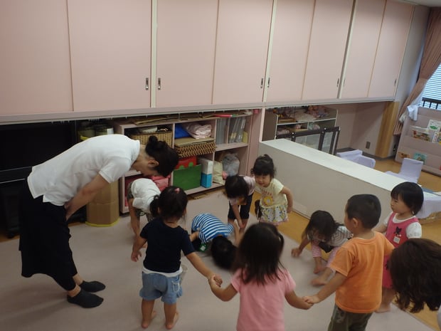 最後はみんなで大きな輪を作って、「さよなら あんころもち また きなこ」でさよならをしました。いつもより大きな輪ができて、プレクラスのお友達もとても嬉しそうでした。また、一緒に過ごせる機会を作れたらいいなと思います。