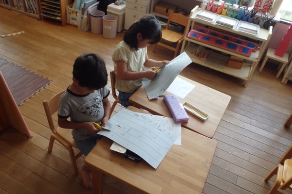 「ティラノサウルスは14mだって!」など知っている恐竜が出てくると嬉しそうにしていたり、「綺麗に作りたい…」と丁寧に作業をしていたりそれぞれの恐竜メジャーを作りました。