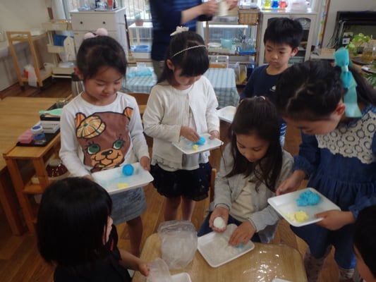 4月こども園「新聞づくり」「せっけんづくり」