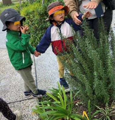散歩の度にマンション横に植えられているローズマリーに「いい匂いだね~」と話していた2歳児クラスのこどもたち。