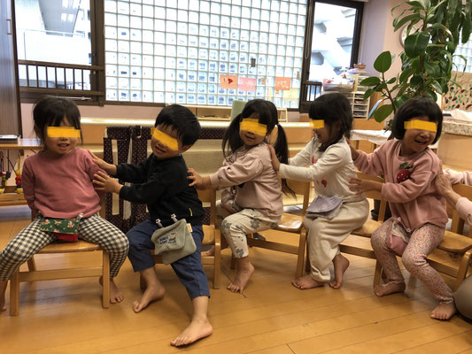 遊びの中で手を繋いだり、触れたりする機会があると、こどもたちはとても嬉しそうです。