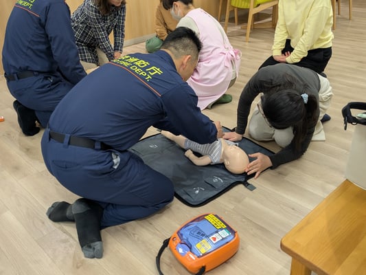 先日、かわのこほいく園内にて、職員を対象とした救命救急講習を実施いたしました。 消防署の方を講師にお招きし、万が一の事態に備えた実践的な訓練を行いました。